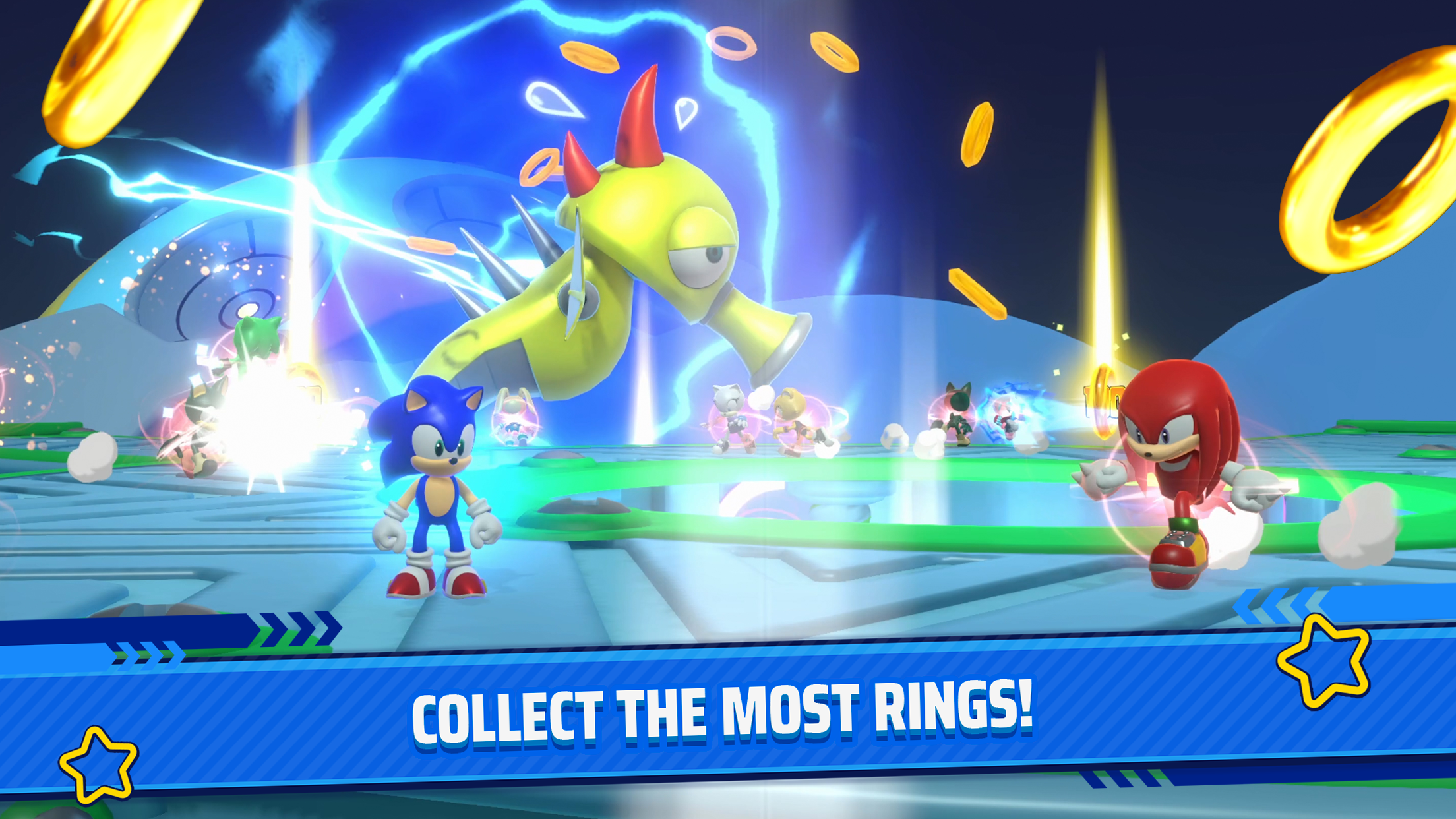 يمكنك تكوين فريق مكوّن من 4 لاعبين نافس الفرق الأخرى أونلاين يمكنك الاستماع إلى أشهر الألحان من عالم سونيك الأصلي بجانب موسيقى جديدة مليئة بالطاقة مع مغامرات، شخصيات، وأوضاع لعب يتم إضافتها باستمرار مثل الركض ، سباق نحو خط النهاية. البقاء ، تجنب الإقصاء لأطول فترة ممكنة معركة الحلقات ، اجمع الحلقات وتفادَ الضربات من الخصوم ويمكنك اللعب مع أصدقائك أو ضد لاعبين من مختلف أنحاء العالم في مباريات سريعة لا تتعدى 10 دقائق، مما يجعلها مثالية للعب في أي وقت .