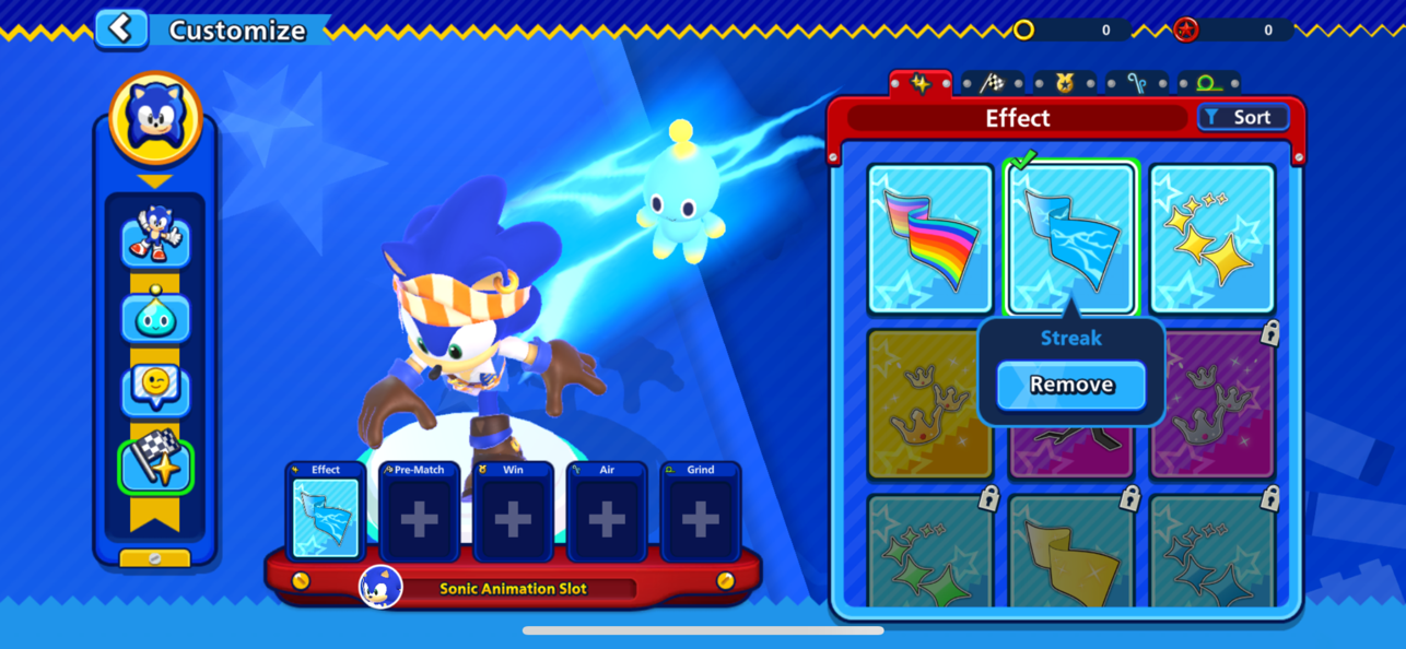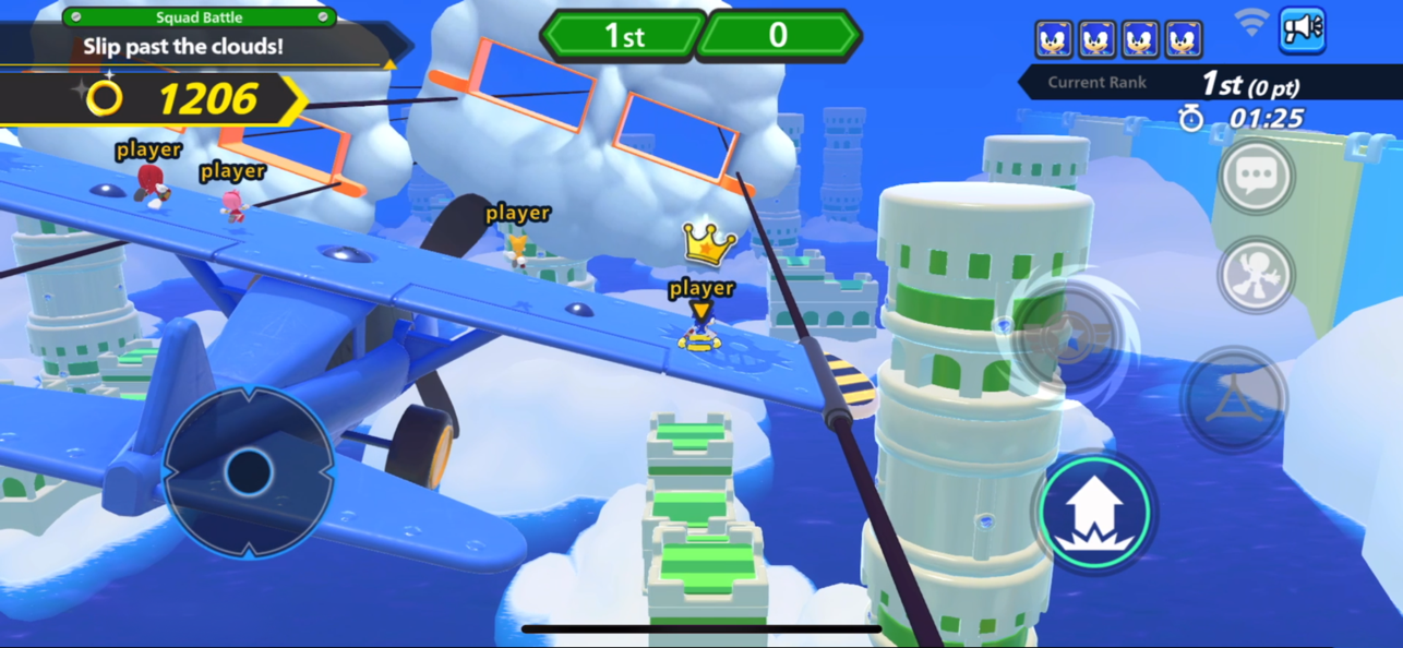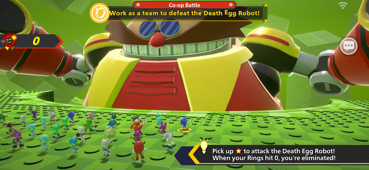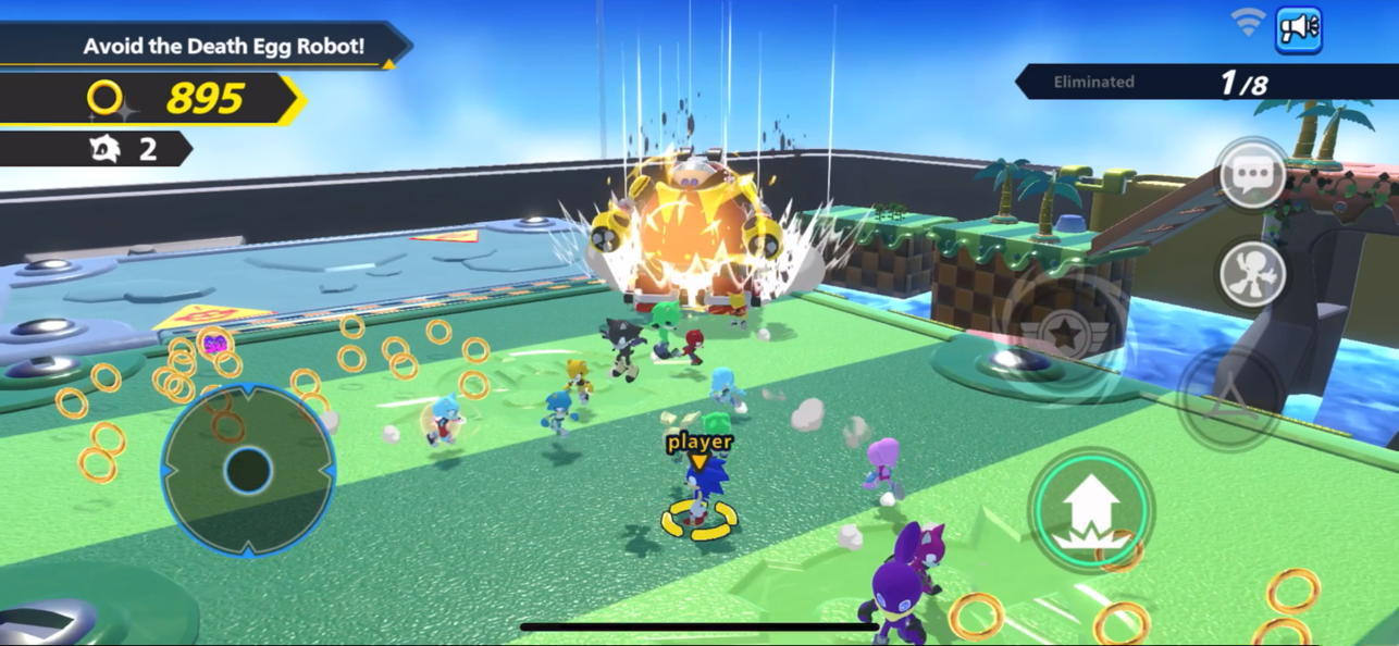 الركض ، سباق نحو خط النهاية. البقاء ، تجنب الإقصاء لأطول فترة ممكنة معركة الحلقات ، اجمع الحلقات وتفادَ الضربات من الخصوم بفضل نظام المباريات القصيرة عشان تقدر تلعب وقت ما تحب وهي لعبه تشبه العاب مثل Fall Guys و Sonic Forces .